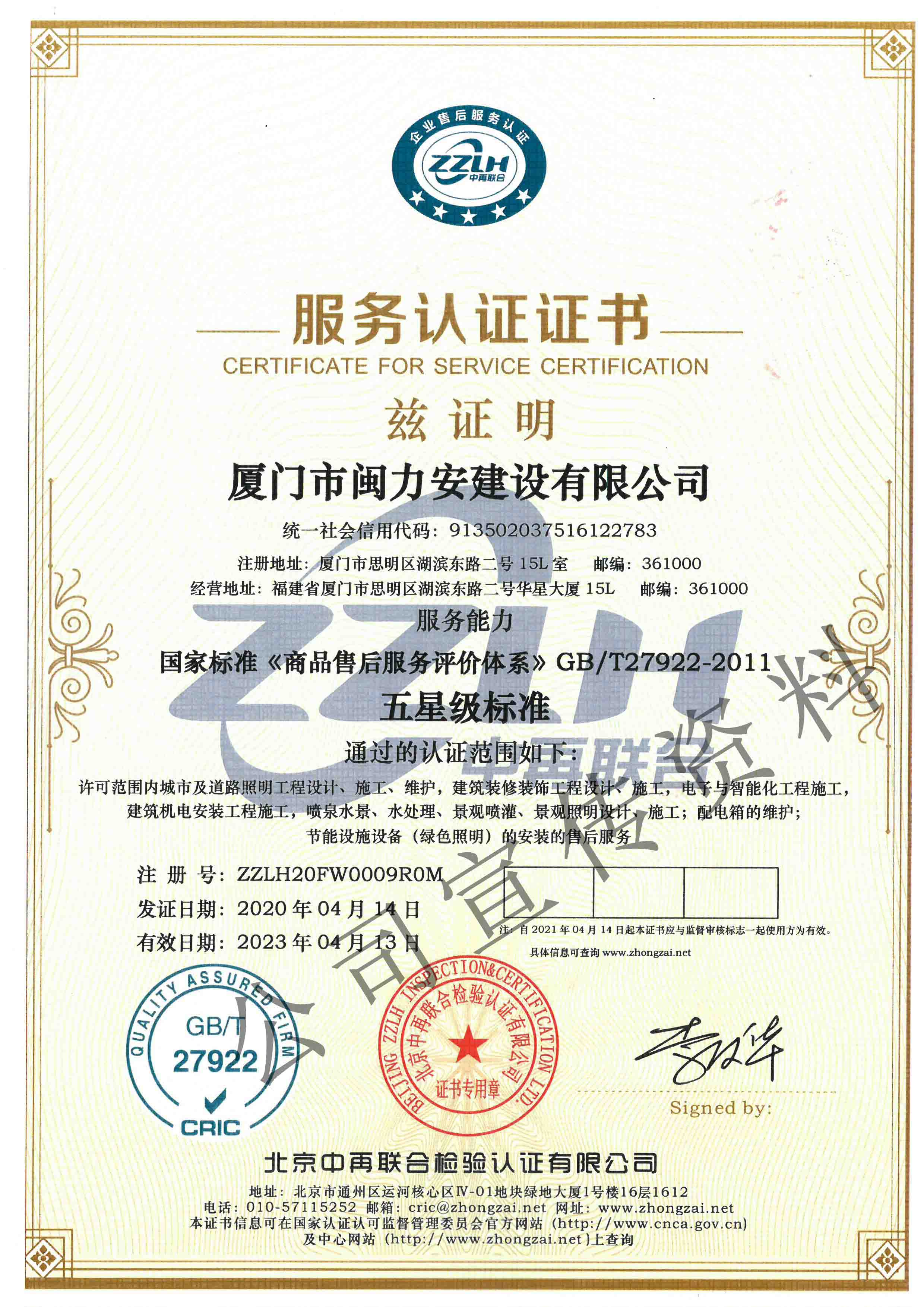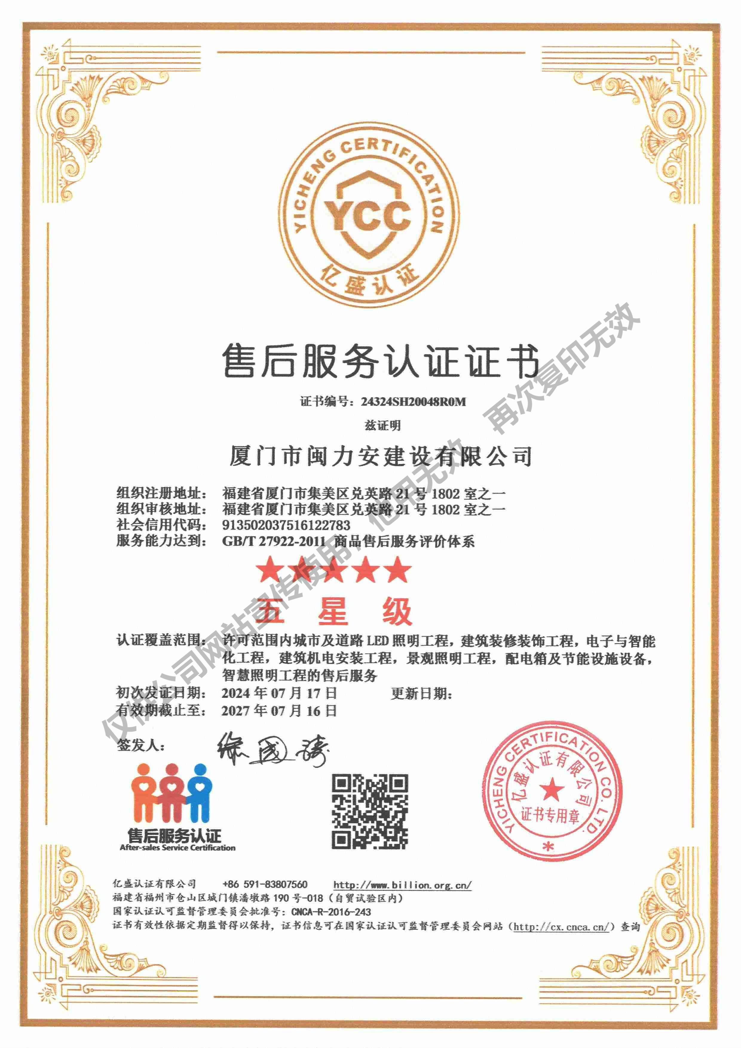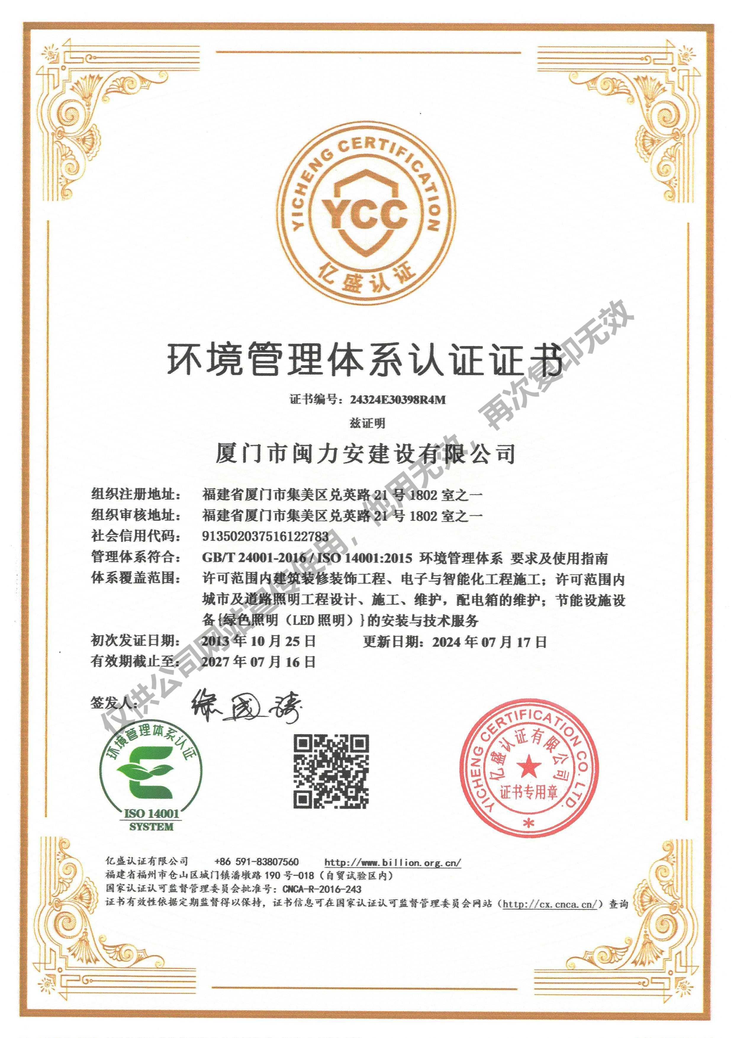 廈門市閩力安建設(shè)有限公司成立于2003年,公司取得市政公用工程施工總承包貳級(jí)、建筑裝修裝飾工程專業(yè)承包壹級(jí)、城市及道路照明工程專業(yè)承包壹級(jí)、電子與智能化工程專業(yè)承包貳級(jí)、消防設(shè)施工程專業(yè)承包貳級(jí)、電力工程施工總承包叁級(jí)、建筑機(jī)電安裝工程專業(yè)承包叁級(jí)、輸變電工程專業(yè)承包叁級(jí)、環(huán)保工程專業(yè)承包叁級(jí)、照明工程設(shè)計(jì)專項(xiàng)甲級(jí)、建筑裝飾工程設(shè)計(jì)乙級(jí)、施工勞務(wù)等資質(zhì)的綜合型企業(yè),公司于2013年通過(guò)了ISO9001質(zhì)量體系認(rèn)證,ISO14001環(huán)境管理體系認(rèn)證,OHSAS18001職業(yè)健康安全管理體系認(rèn)證。